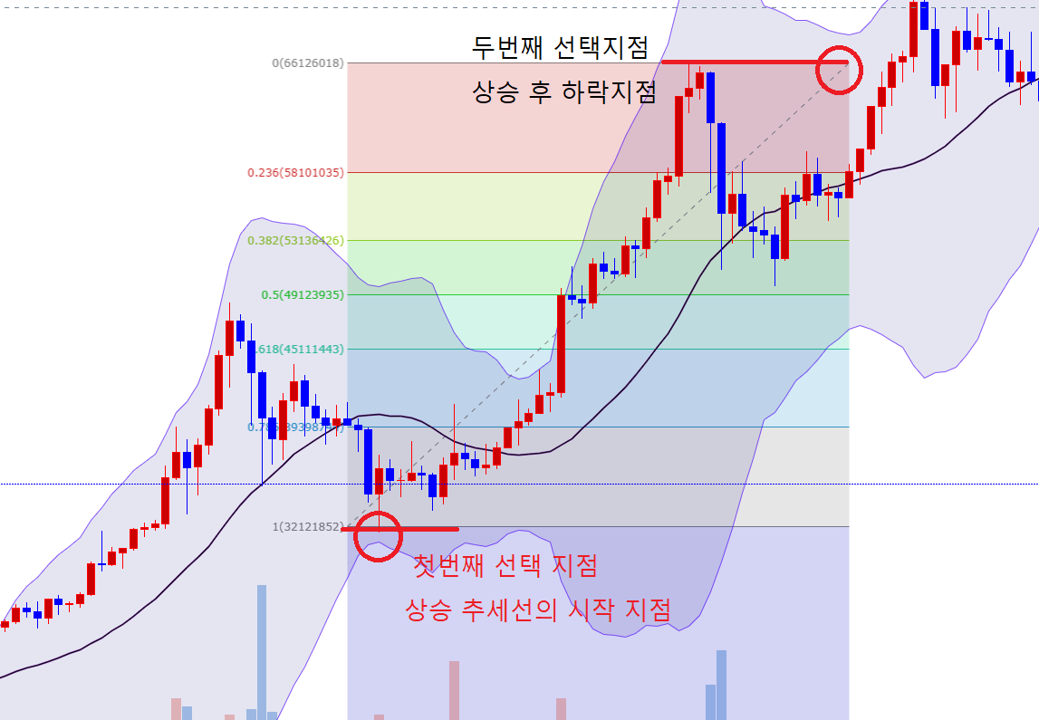 하락 추세에서 피보나치 찍는 법.